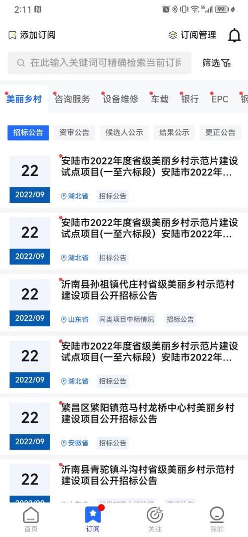 依托高度結構化的數據質量,信息定制服務支持用戶從行業、地區、預算、資金來源、發布時間、交易平臺、招標人、招標代理機構等維度對于標簽訂閱結果二次篩選。