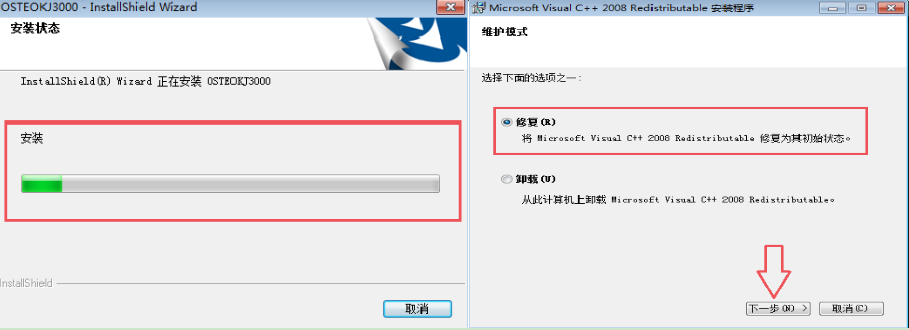 10、 此時正在安裝軟件,選擇----修復,點擊----下一步