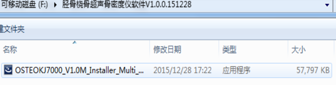 2. 打開U盤,找到脛骨橈骨超聲骨密度儀軟件V1.0.0.151228