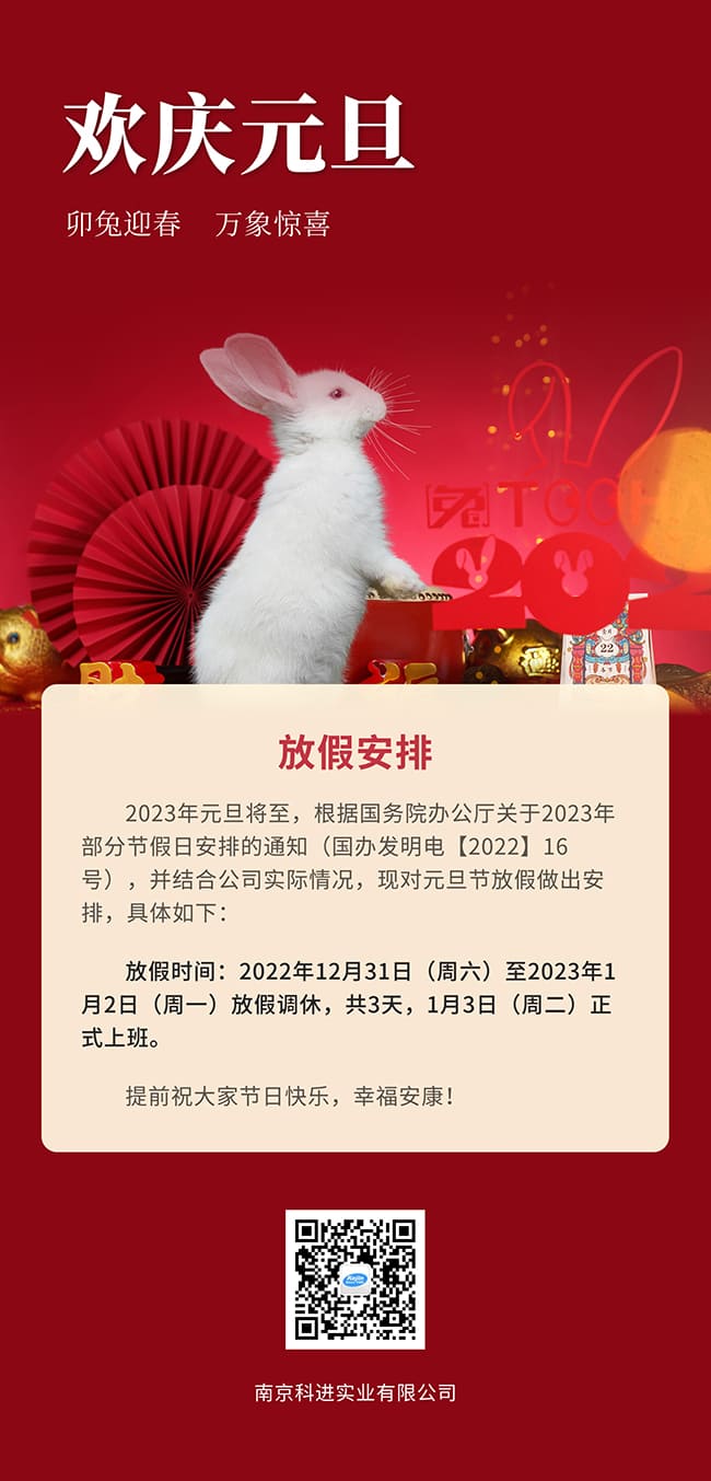 新的一年,新的開(kāi)始。告別過(guò)去的煩惱與不開(kāi)心,南京科進(jìn)在2023年繼續(xù)與您同行。