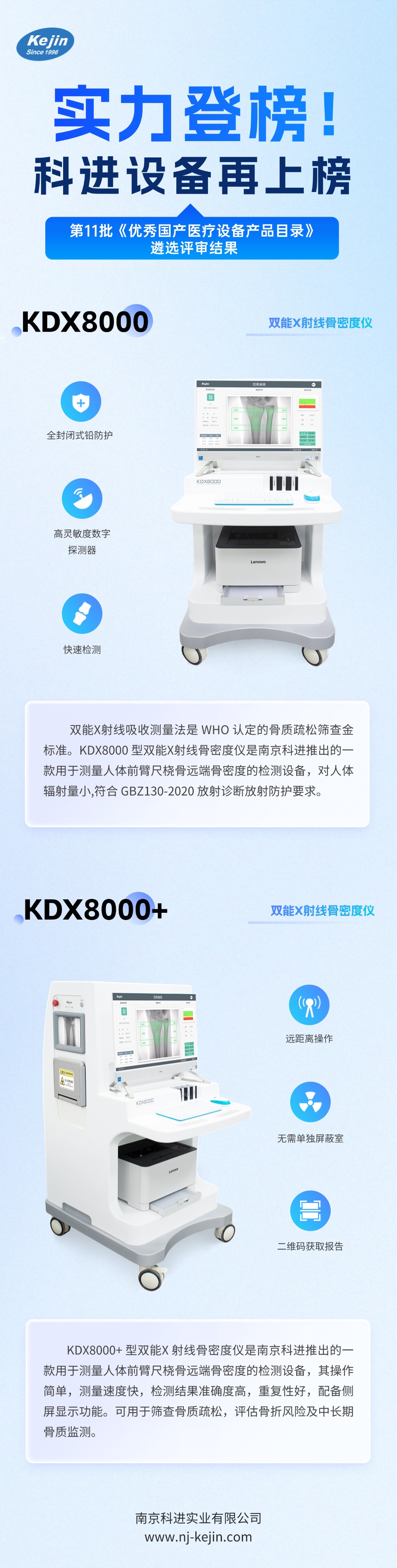 此次科進(jìn)品牌雙能X射線骨密度儀KDX8000、KDX8000+成功入選第十一批《優(yōu)秀國產(chǎn)醫(yī)療設(shè)備產(chǎn)品目錄》,不僅是對科進(jìn)在技術(shù)創(chuàng)新、產(chǎn)品質(zhì)量及臨床應(yīng)用價值上的充分肯定,也是國產(chǎn)醫(yī)療設(shè)備在醫(yī)療裝備領(lǐng)域取得重要突破的有力證明。