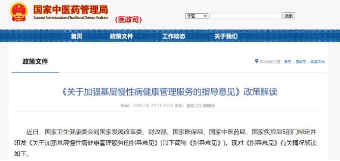 近日,國家衛(wèi)生健康委等六部門聯(lián)合印發(fā)了《關于加強基層慢性病健康管理服務的指導意見》。文件聚焦高血壓、2型糖尿病、慢阻肺等常見慢性疾病,強調(diào)要在基層提供系統(tǒng)、連續(xù)、可及的健康服務,讓居民在家門口就能獲得專業(yè)管理。