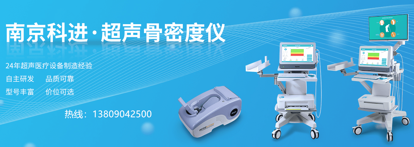 南京科進實業(yè)有限公司自主研發(fā)生產的超聲骨密度儀,該設備采用超聲波測定法:由于其和檢查骨折較敏感而引起人們的廣泛關注,利用聲波傳導速度和振幅衰減能反映骨礦含量多少和骨結構及骨強度的情況。該法操作無創(chuàng)、無痛、,尤其對兒童和孕婦此方法更為適合。