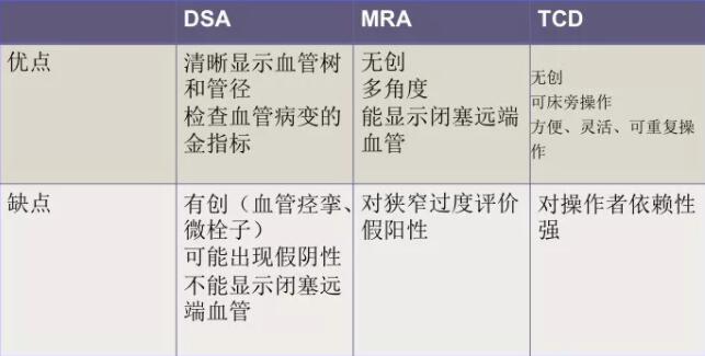 TCD、MRA 和DSA 三種檢查方法的優(yōu)缺點(diǎn)比較
